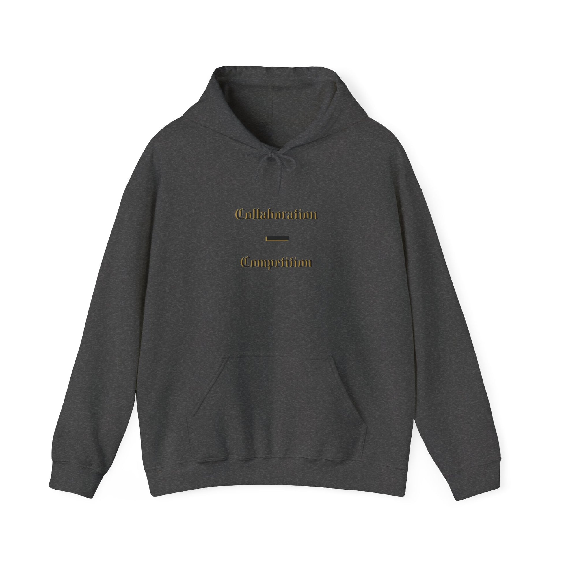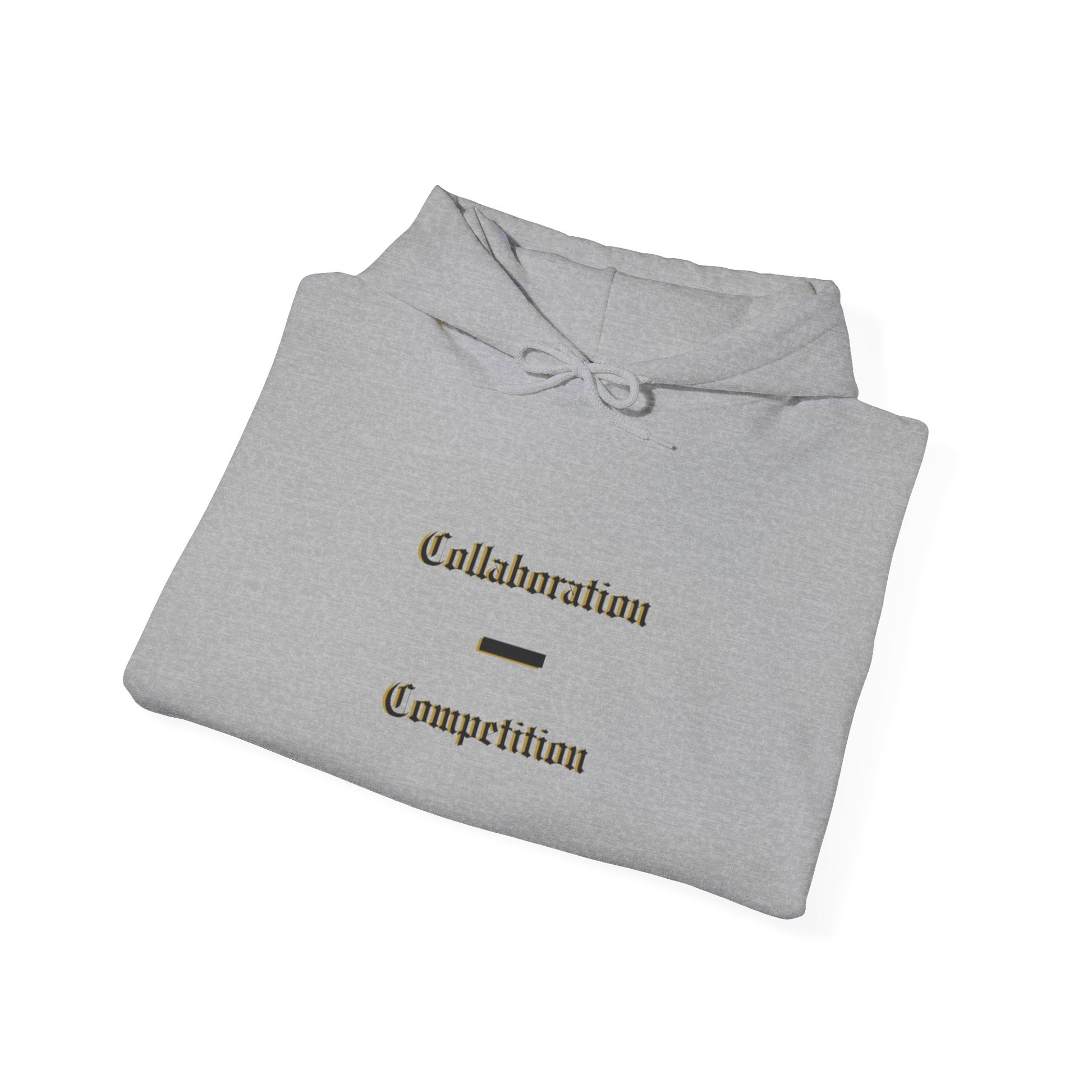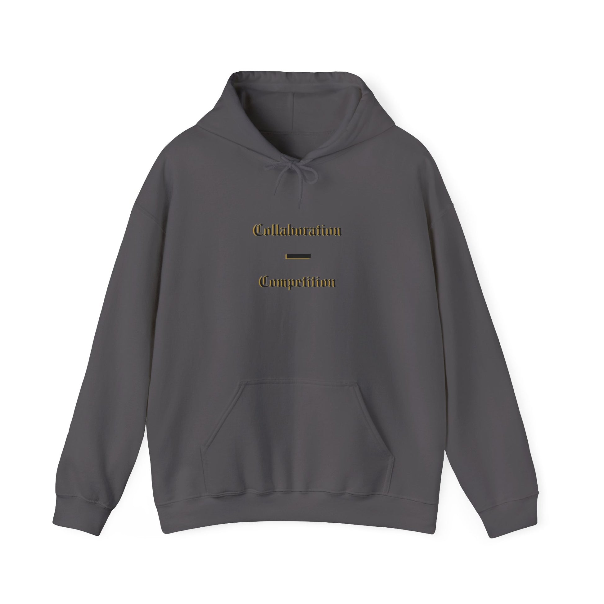 Featuring a spacious kangaroo pocket at the front, this sweatshirt combines practicality with style. The hood's drawstring, matching the sweater's base color, adds a touch of sophistication to the overall design. Whether you're lounging at home or out and about, this sweatshirt effortlessly merges comfort and fashion, embodying the message of collaboration over competition.