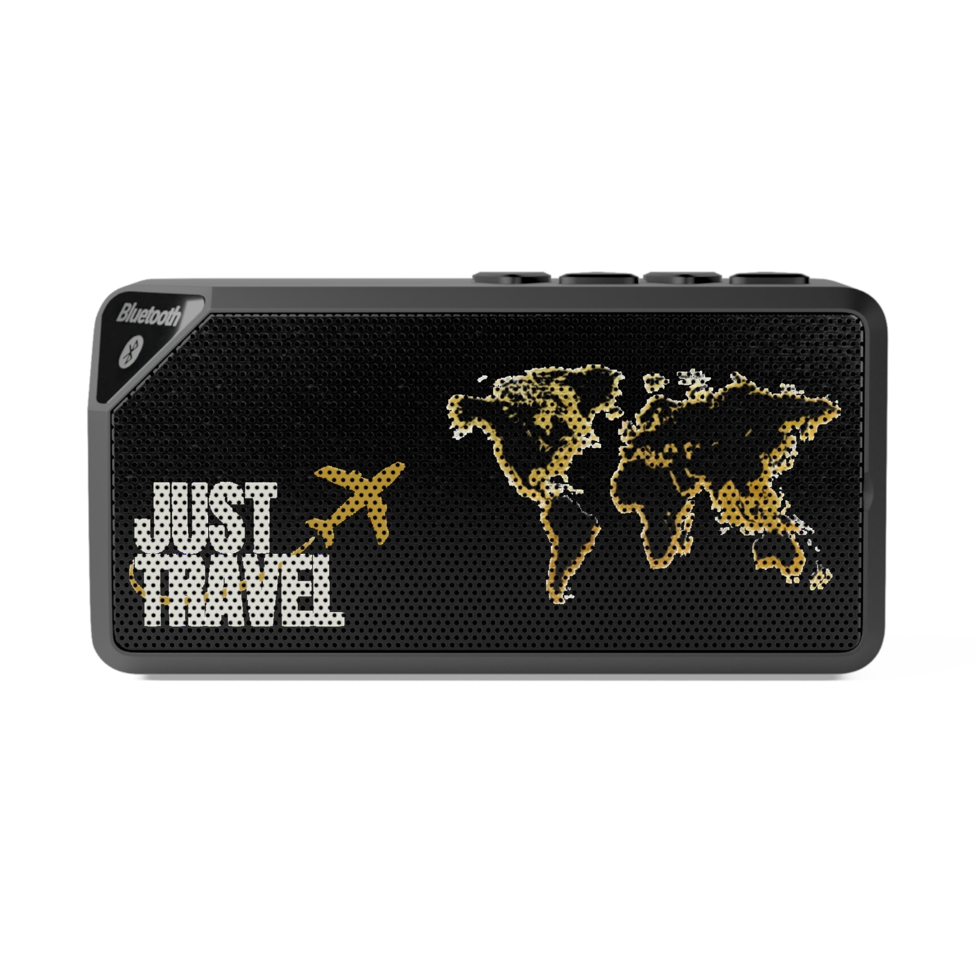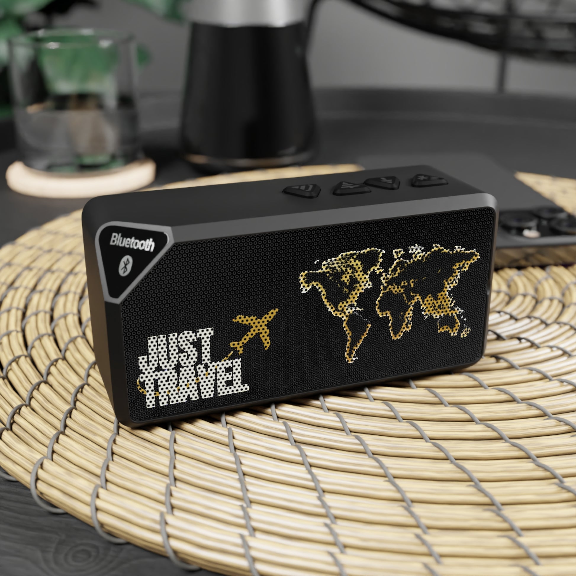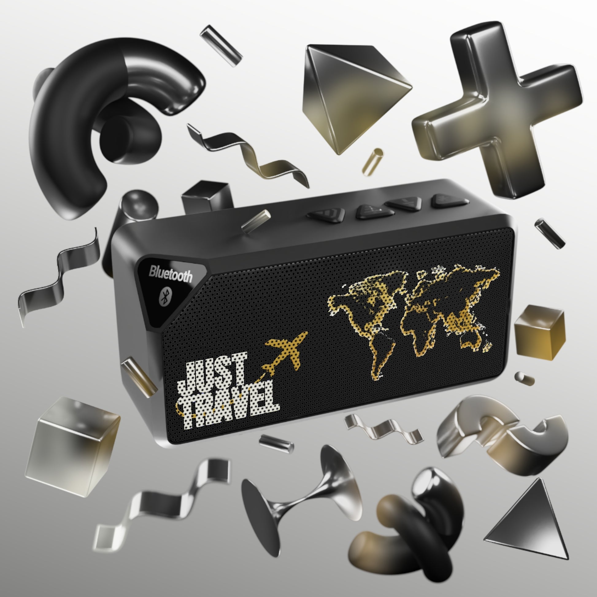 "Bring the party wherever you go with the Just Travel Golden World Bluetooth Speaker! Offering 2 hours of seamless Bluetooth playback and a 33-foot range, it’s your ultimate companion for road trips, beach days, and unforgettable parties. Need versatility? The 3.5mm audio input keeps you connected to any device. Good vibes, great sound—this speaker’s got you covered!"