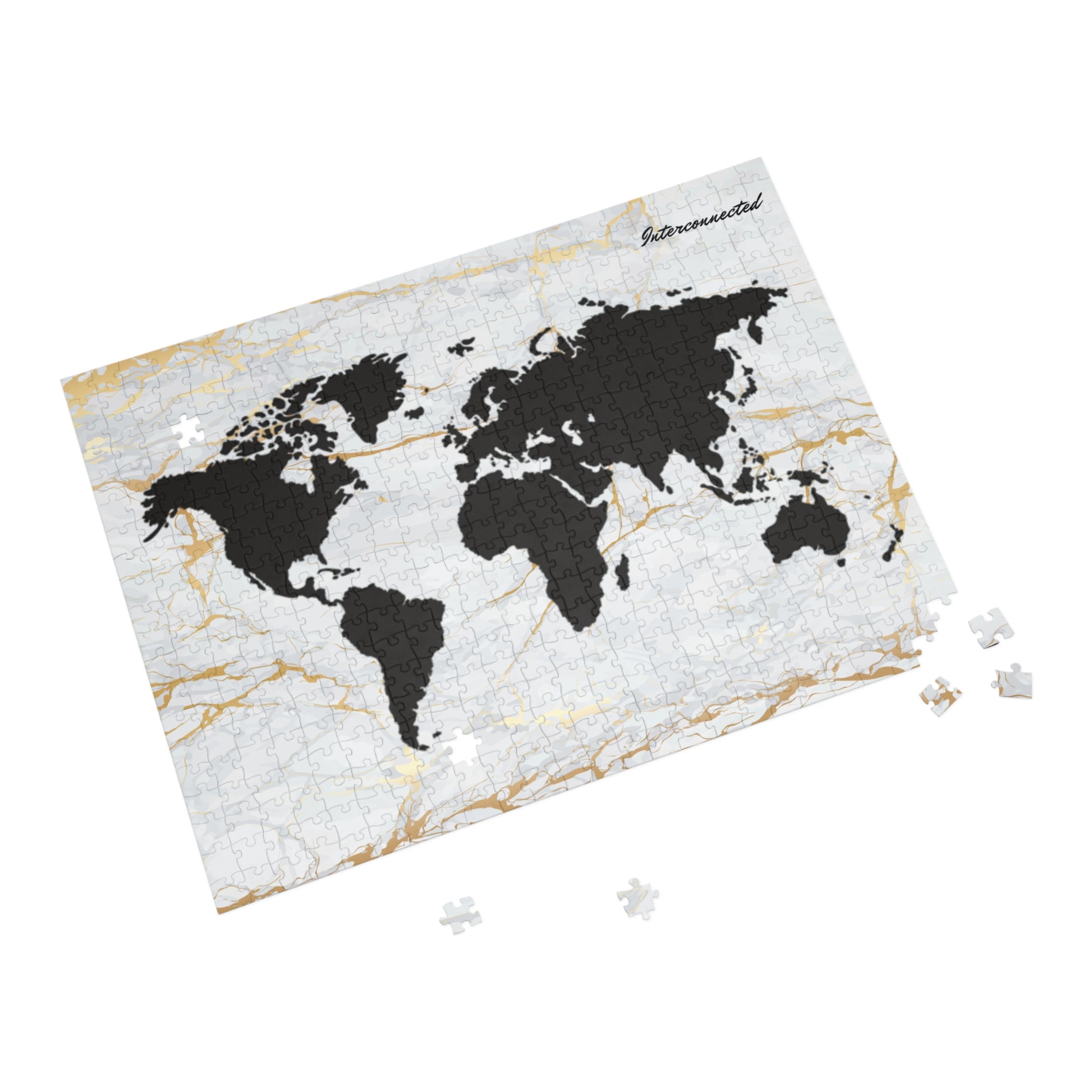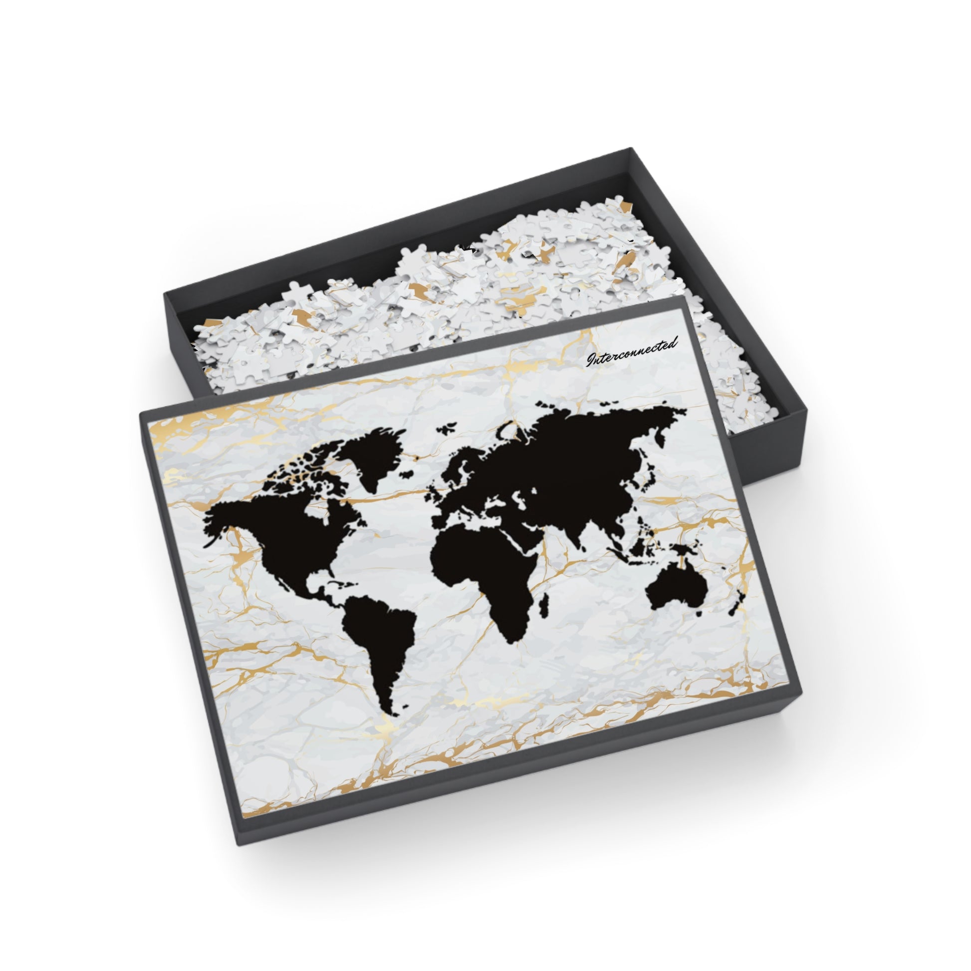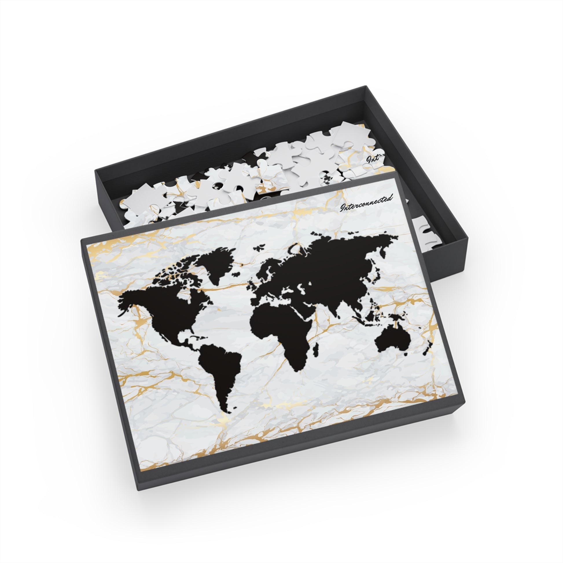 Indulge in our Precious World Puzzle with marble, black and gold. Designed to captivate and challenge families as they come together in refined enjoyment.