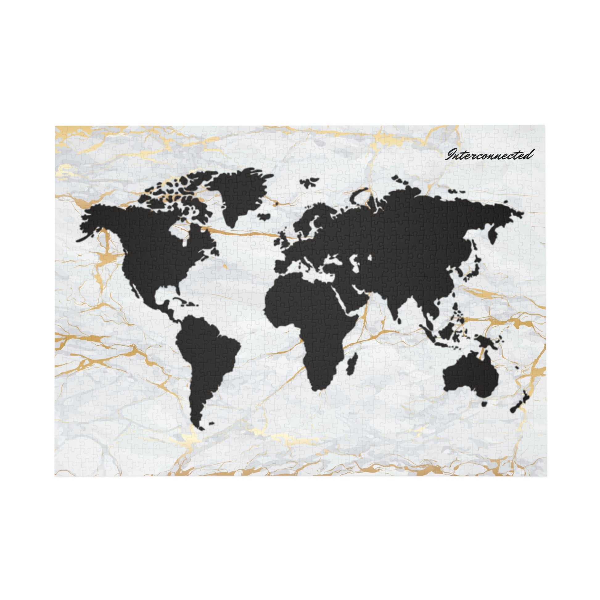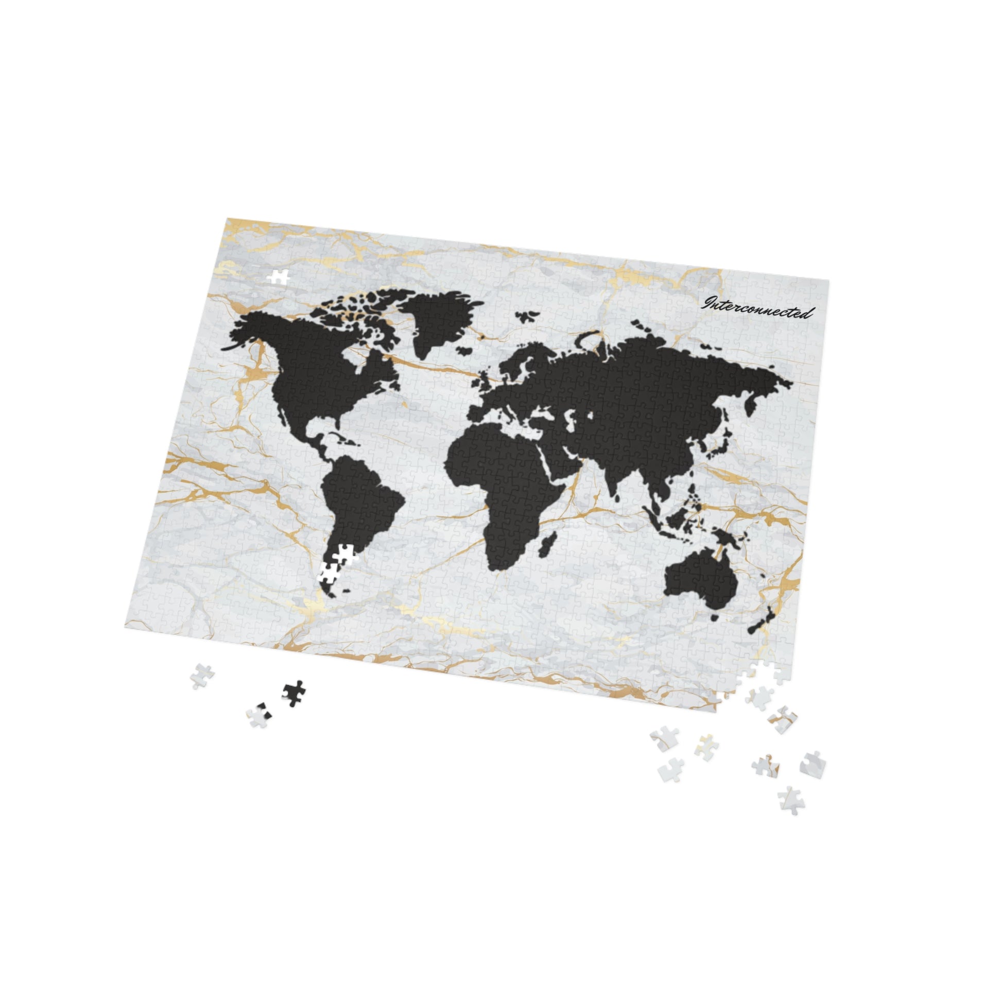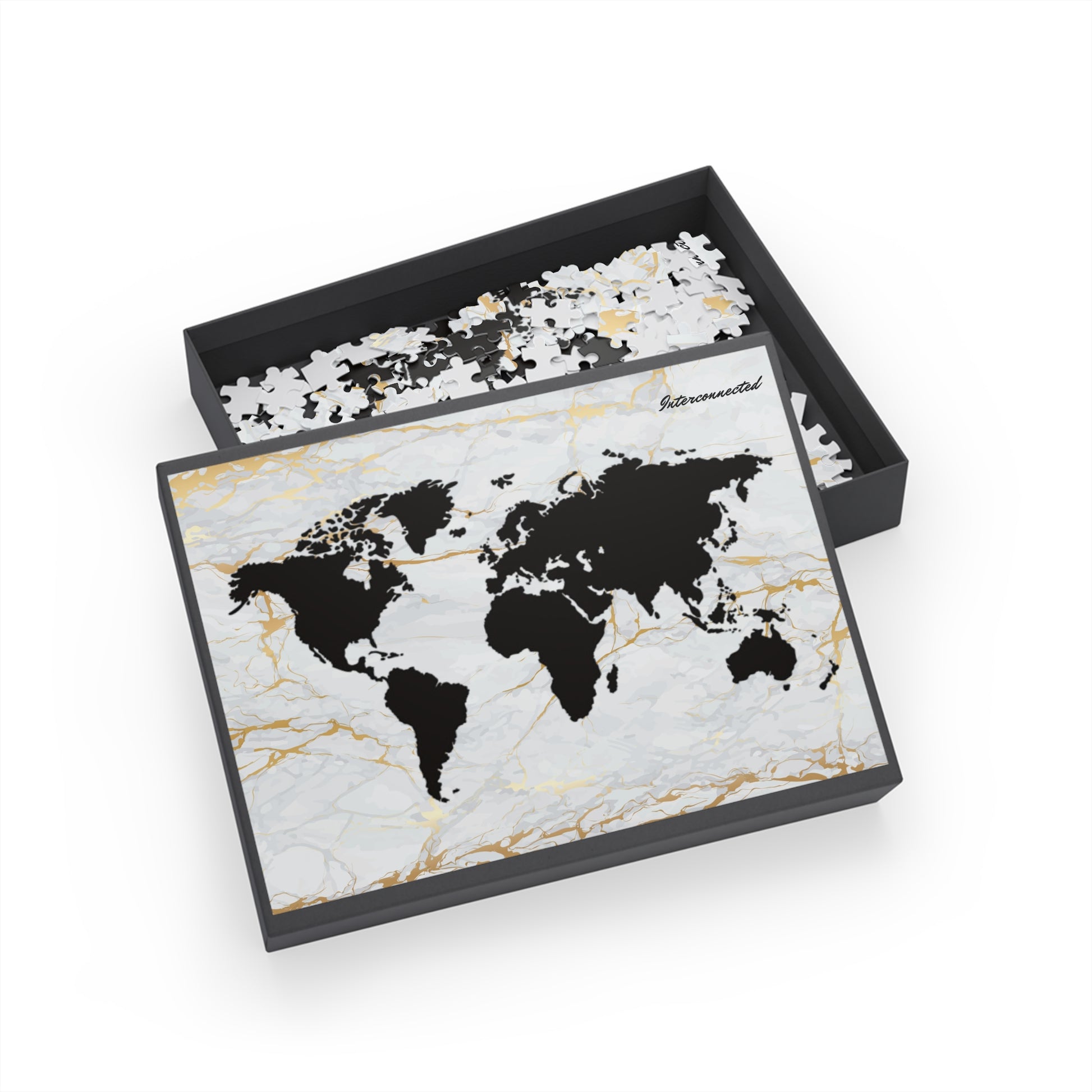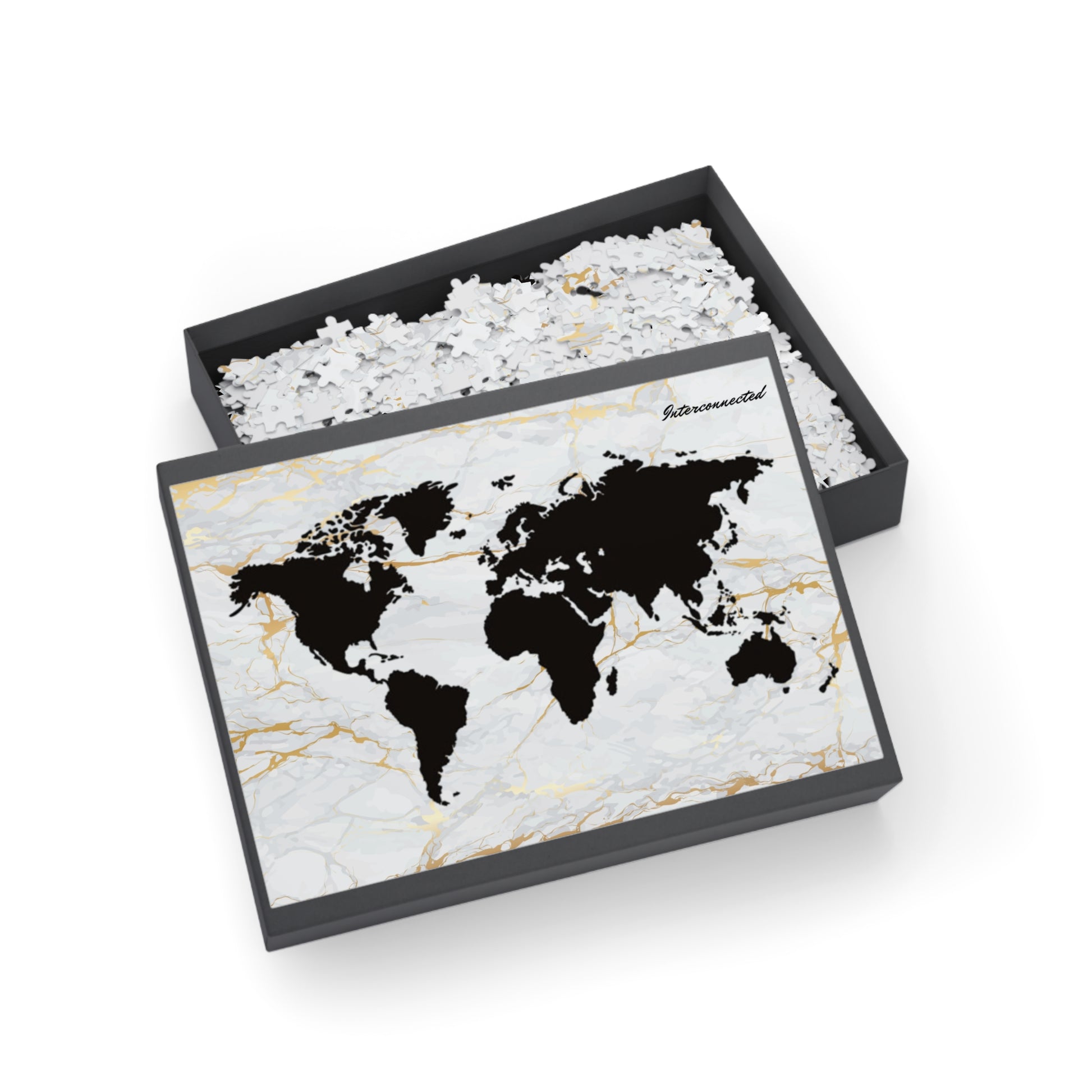 Indulge in our Precious World Puzzle with marble, black and gold. Designed to captivate and challenge families as they come together in refined enjoyment.