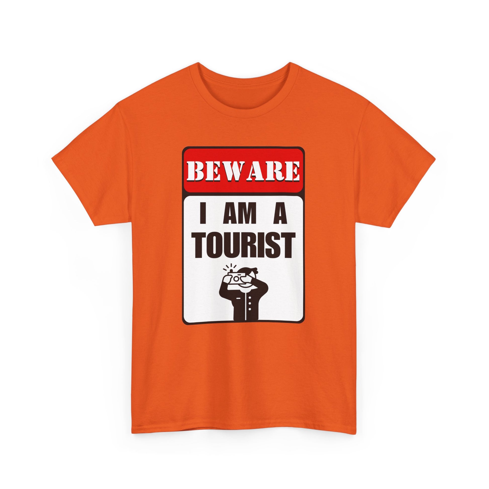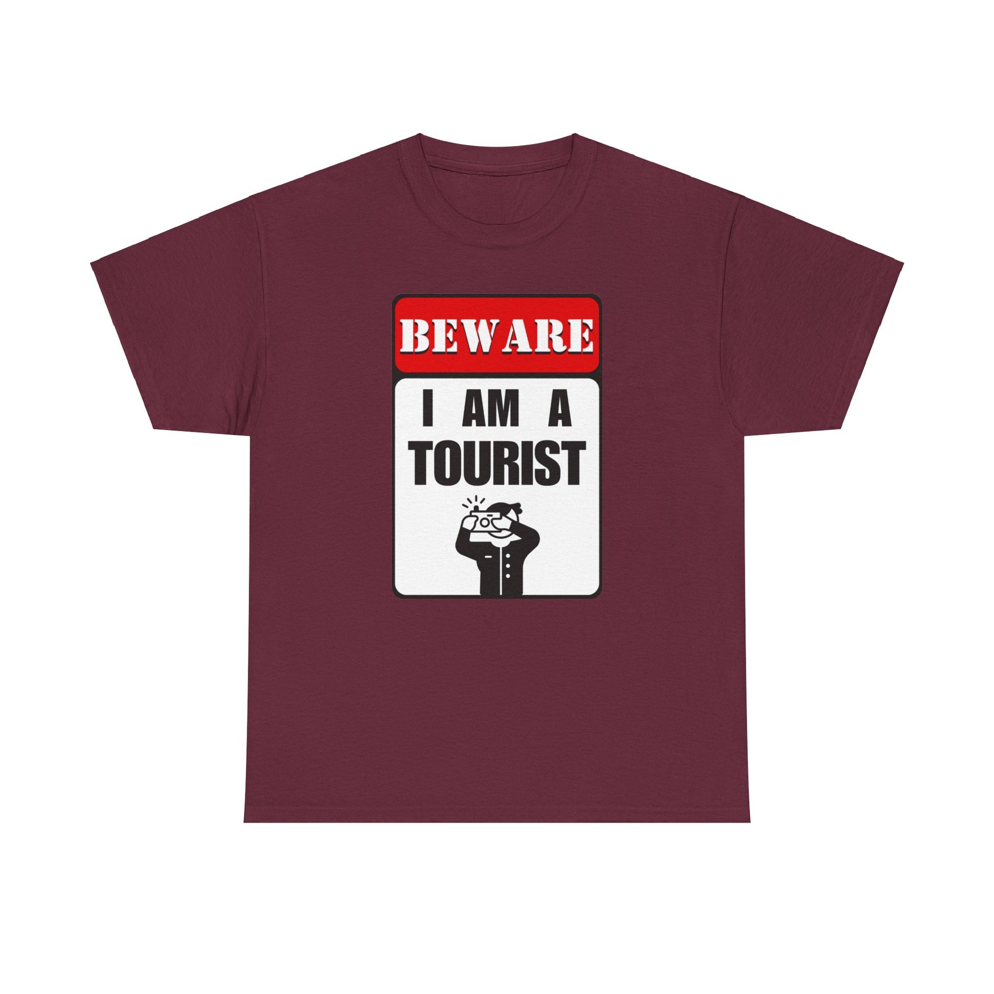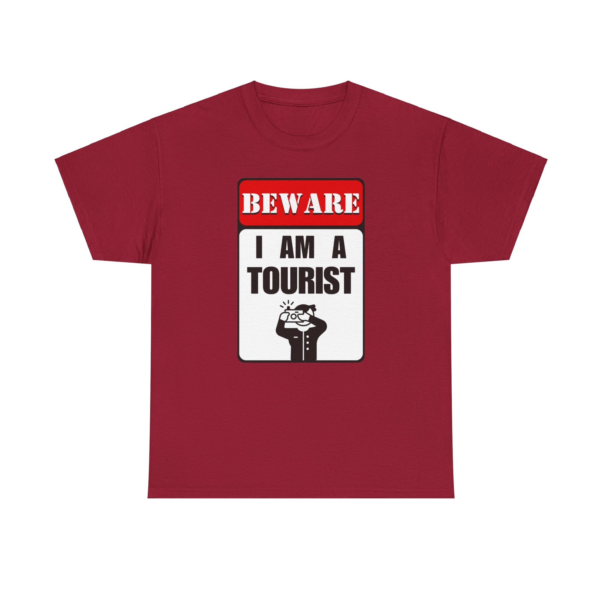 So, grab your "Beware, I am a Tourist" t-shirt, and get ready to embark on unforgettable adventures with a sign of understanding on your chest. Whether you're wandering through bustling streets or marveling at the wonders of the world, let your curiosity lead the way – and wear it proudly.