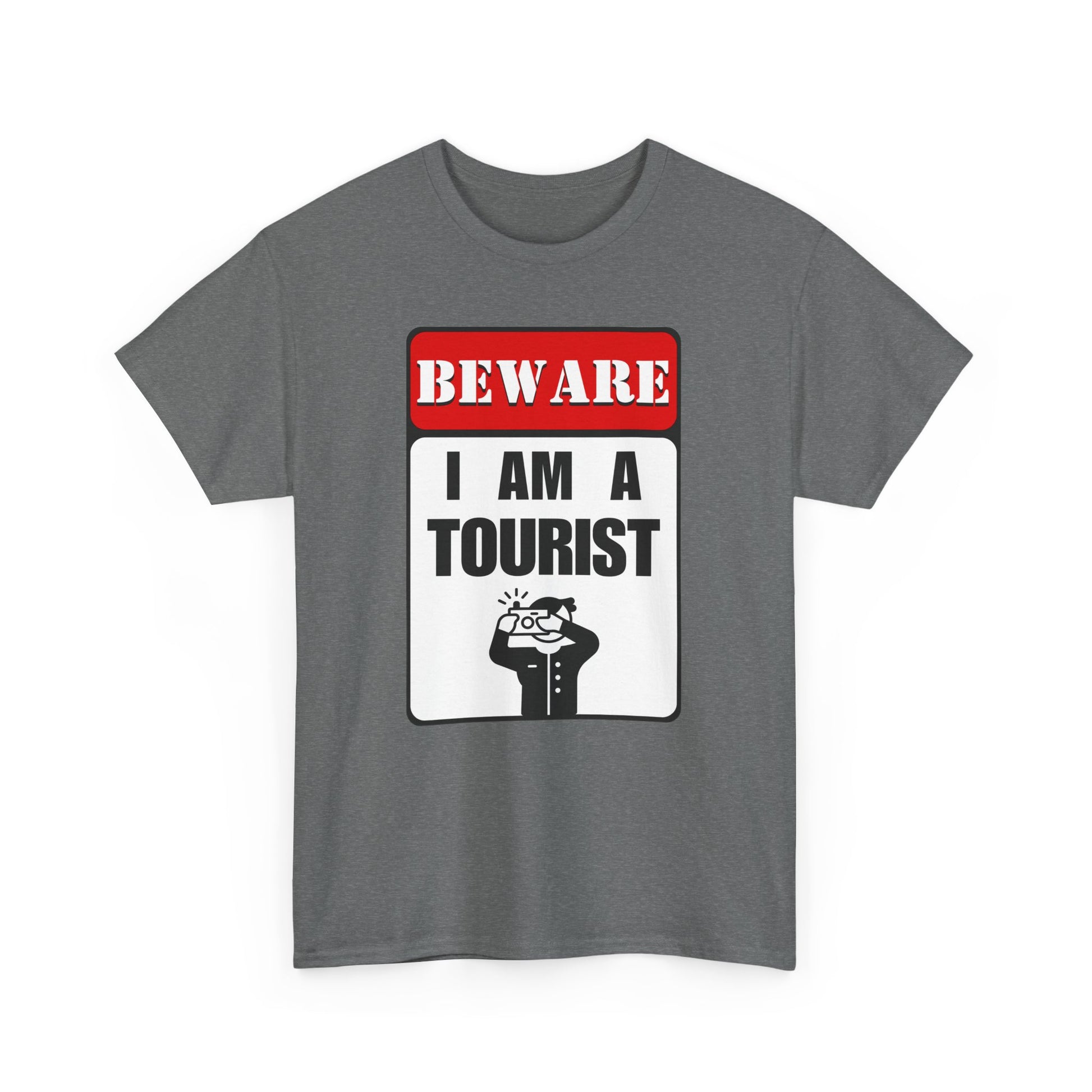 Introducing our "Beware, I am a Tourist" t-shirt – the perfect attire for embracing your inner explorer and declaring your love for adventure wherever you go.